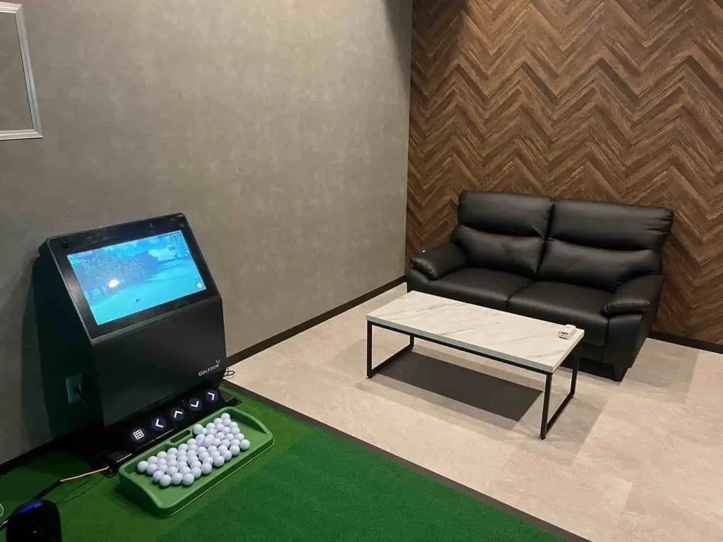 完全個室(33畳)と広々とした空間から、右利き・レフティーともに対応した打席が設けられています。また、パター専用の人工芝が敷いてあるためパター練習も可能です。